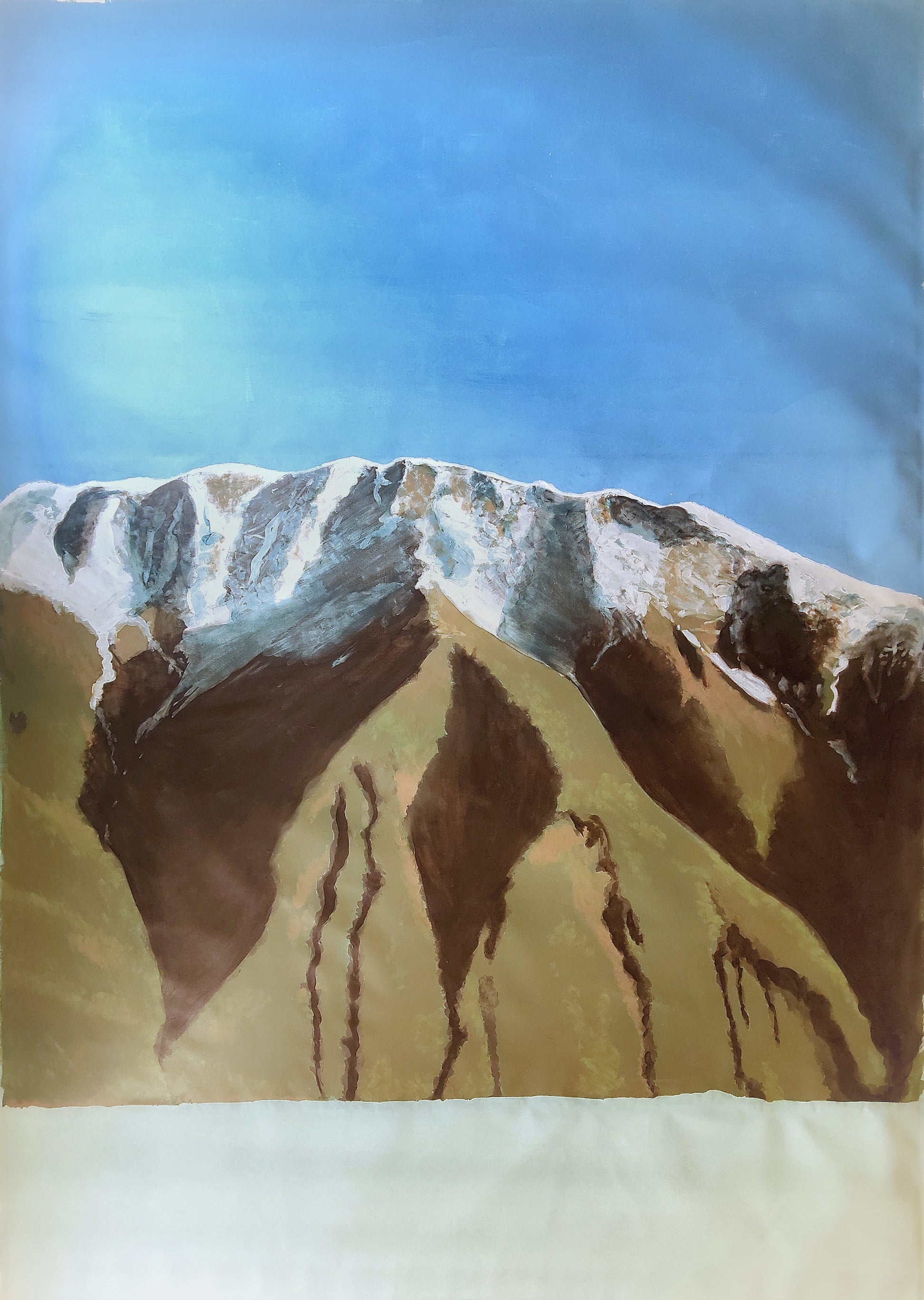Biletet er omtrent 3 meter høgt og 2 meter breitt. Motivet er fjellet Bleia som raver høgt over fjorden med sine snødekte toppar og skarpe skrentar. Eit kjent og kjært fjell for mange som også blant mange andre også er måla av den kjente kunstnaren Hans Gude som dei fleste kjenner frå Brudeferd i Hardanger.