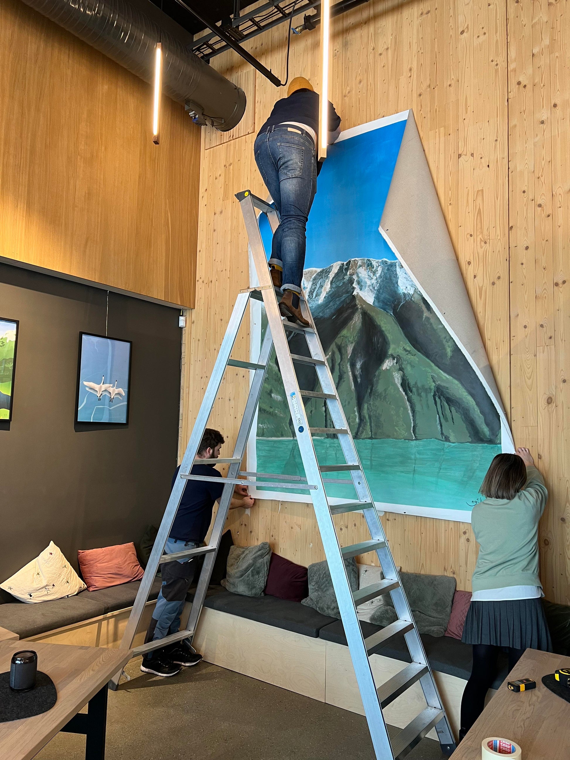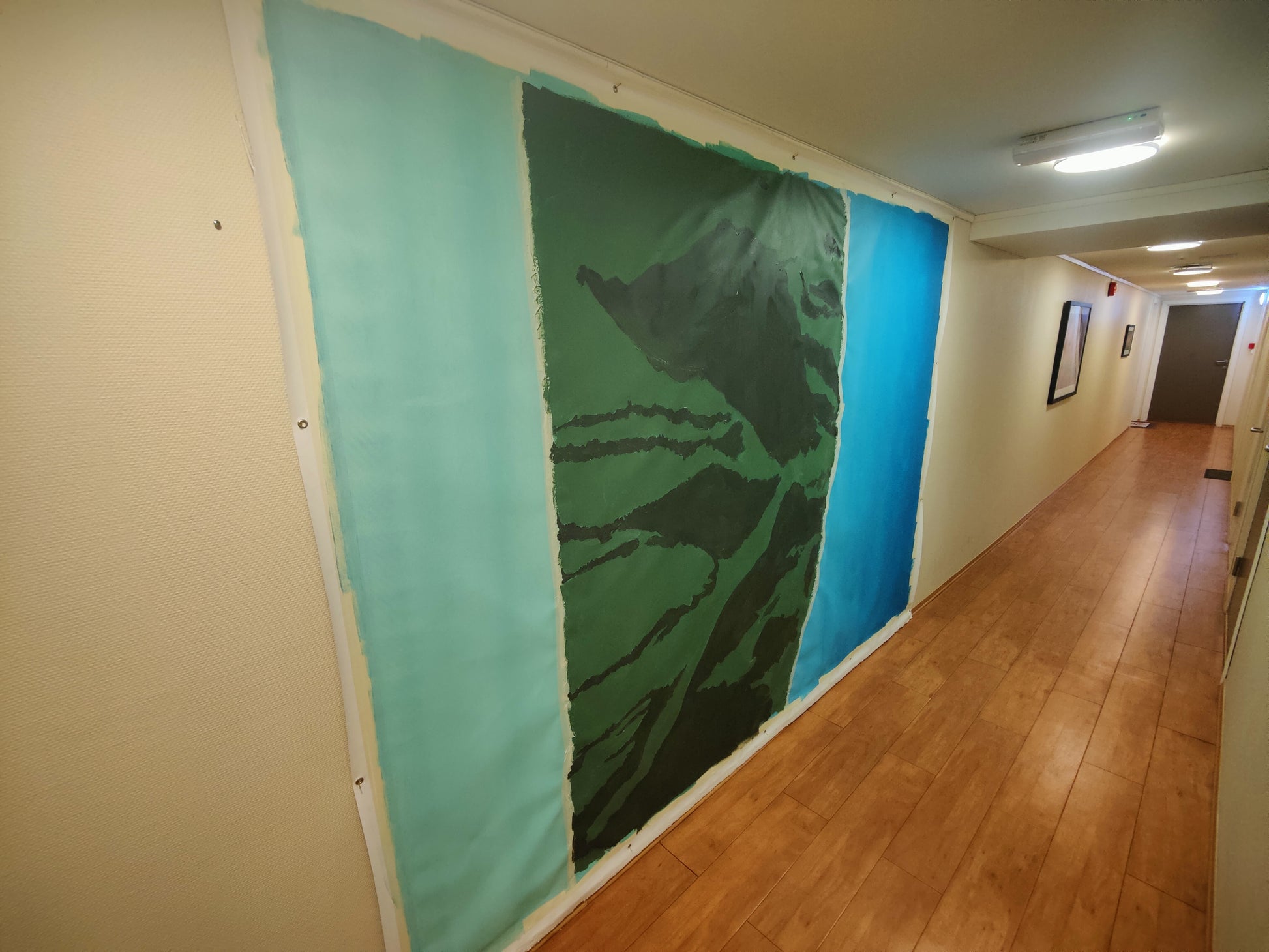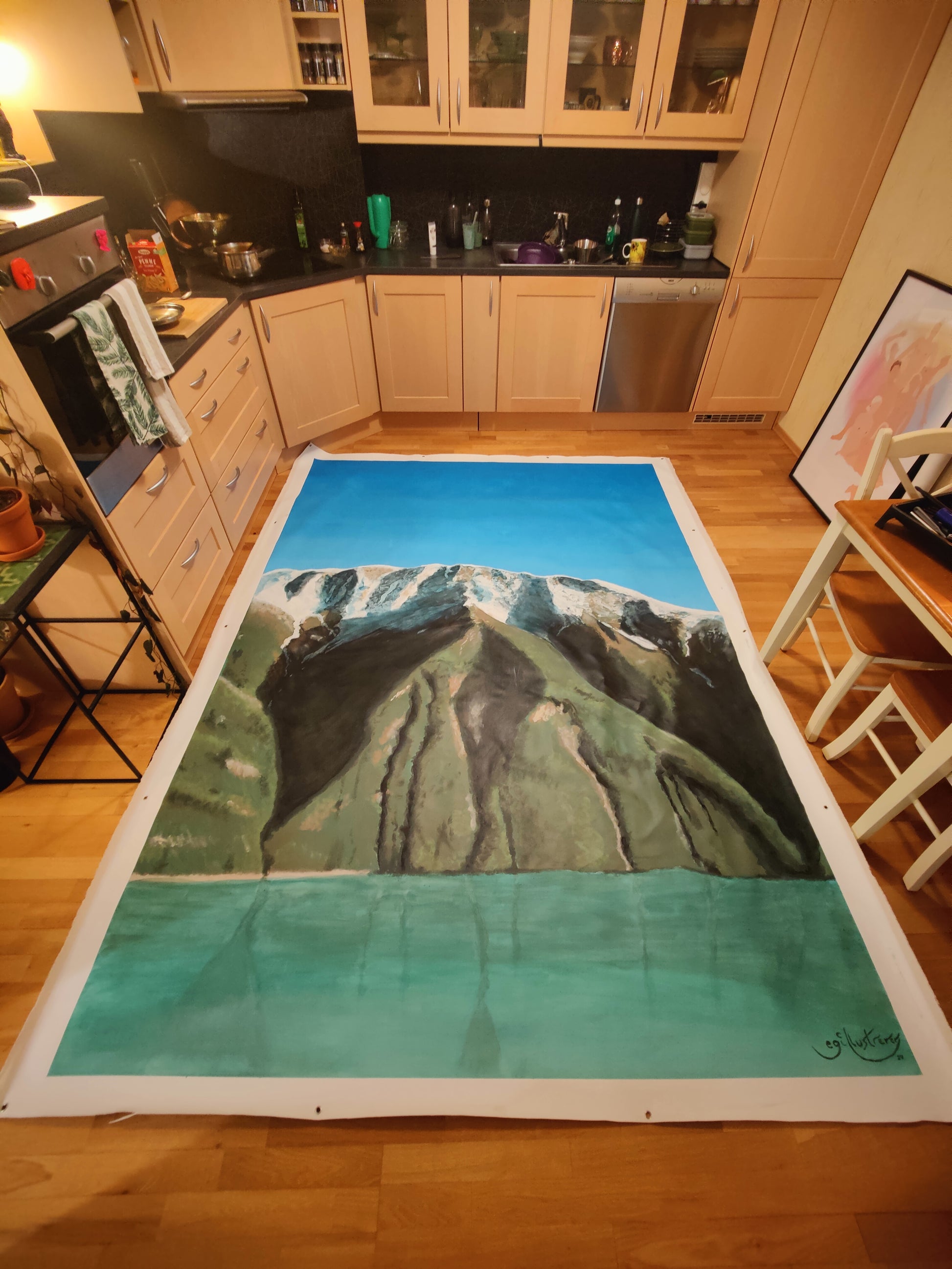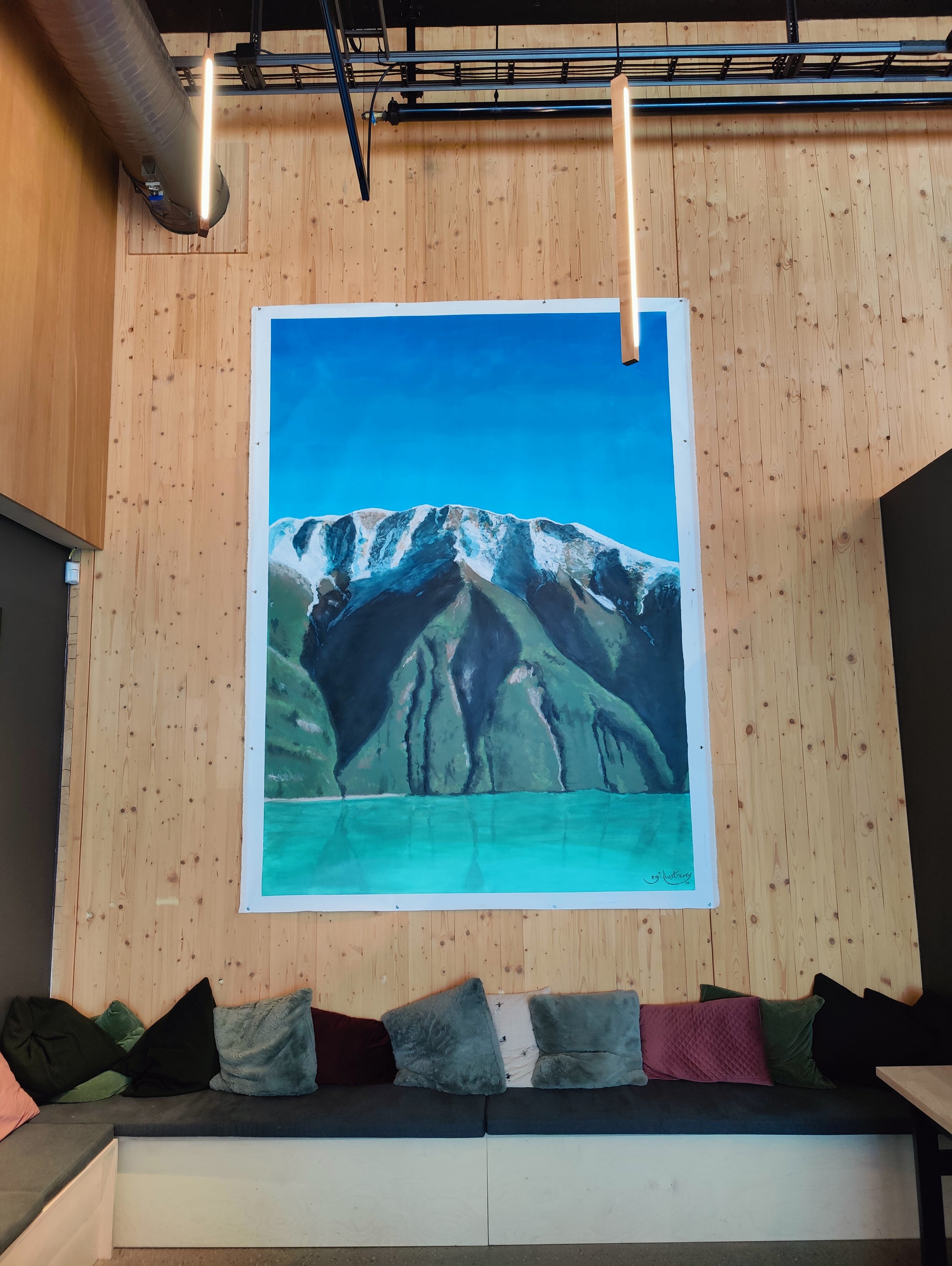 Ideen om måleriet av Bleia vart til i samarbeid med Heidi på ViteMeir. Ho trengte kunst i kafeen og den store veggen der måleriet no heng ropte til meg eit behov om noko STORT! Biletet har kun hengt til pynt så langt utan at eg har prøvd å selge det, men no ligg det altså ute til salgs.