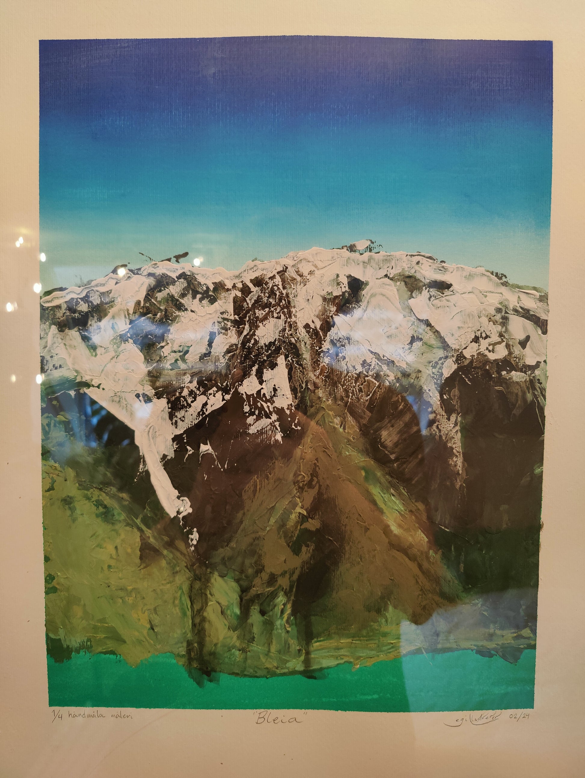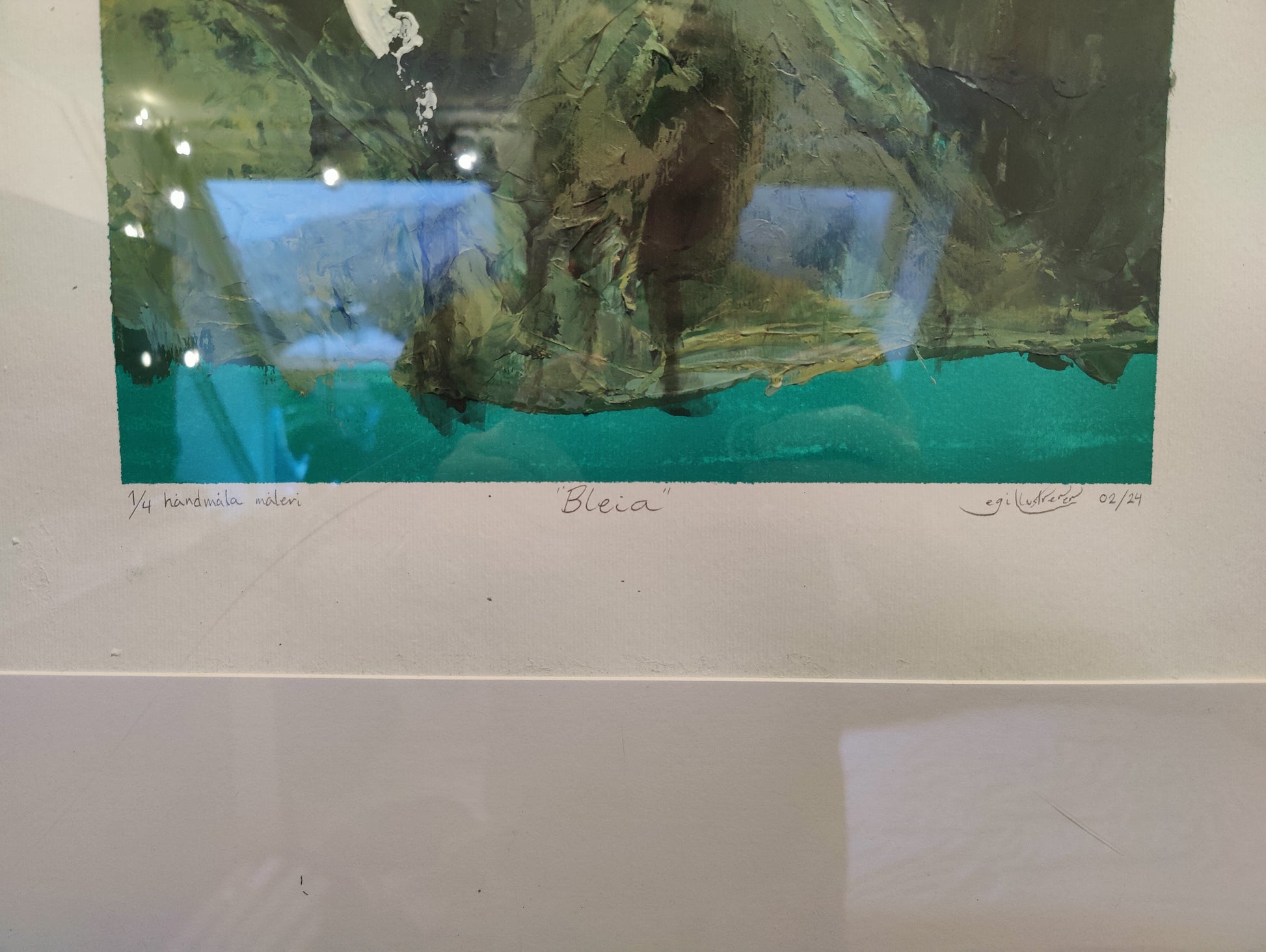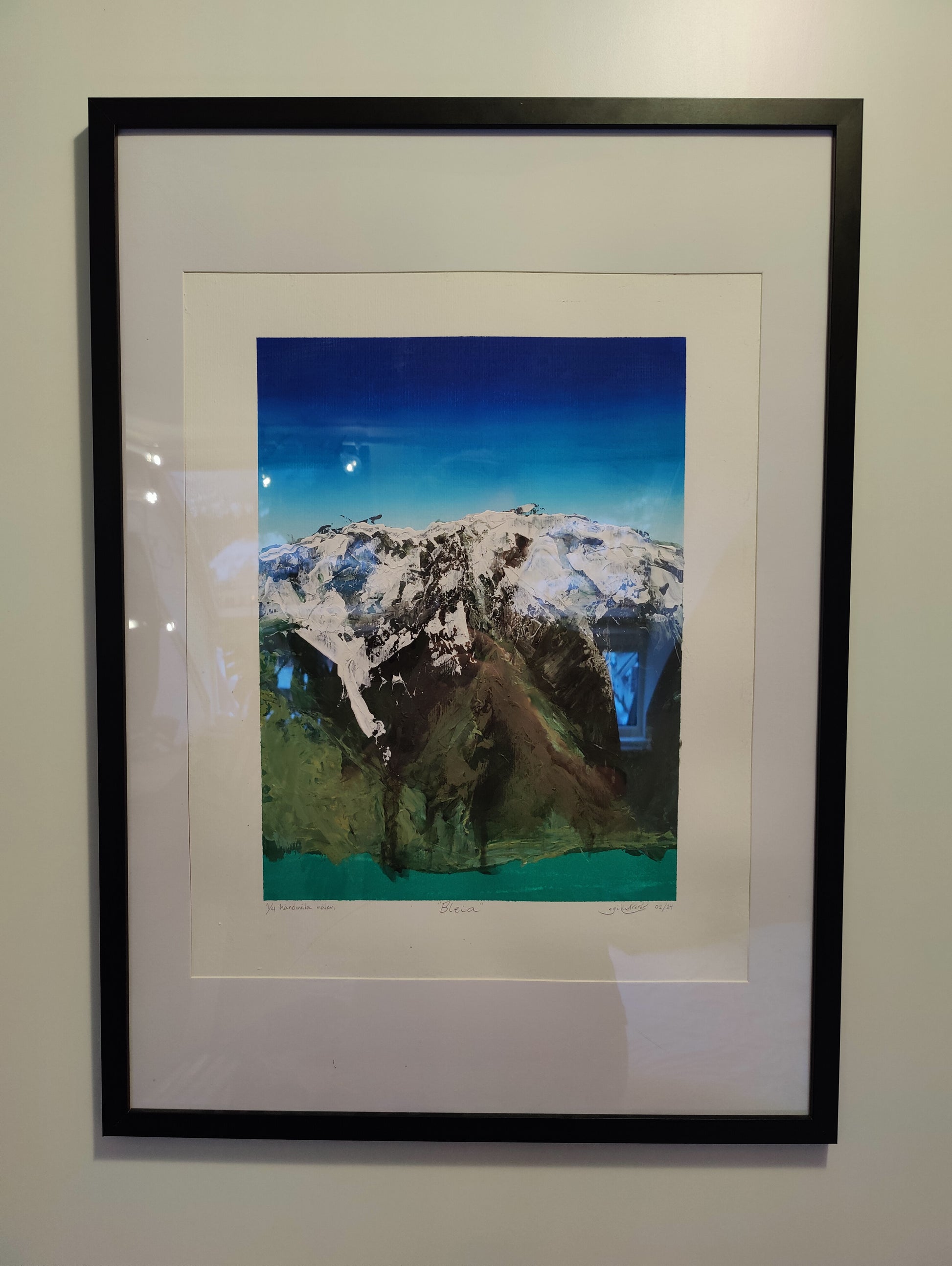 Motivet er det flotte fjellet Bleia som ligg i Lærdal kommune, men som best nytast i utsikten frå Kaupanger. Måleriet er måla i akryl på 300 gsm cotton papir, sjølve motivet er 30x40 cm, passepartout er 40x50 cm og er ramma inn med 50x70 cm ramme.