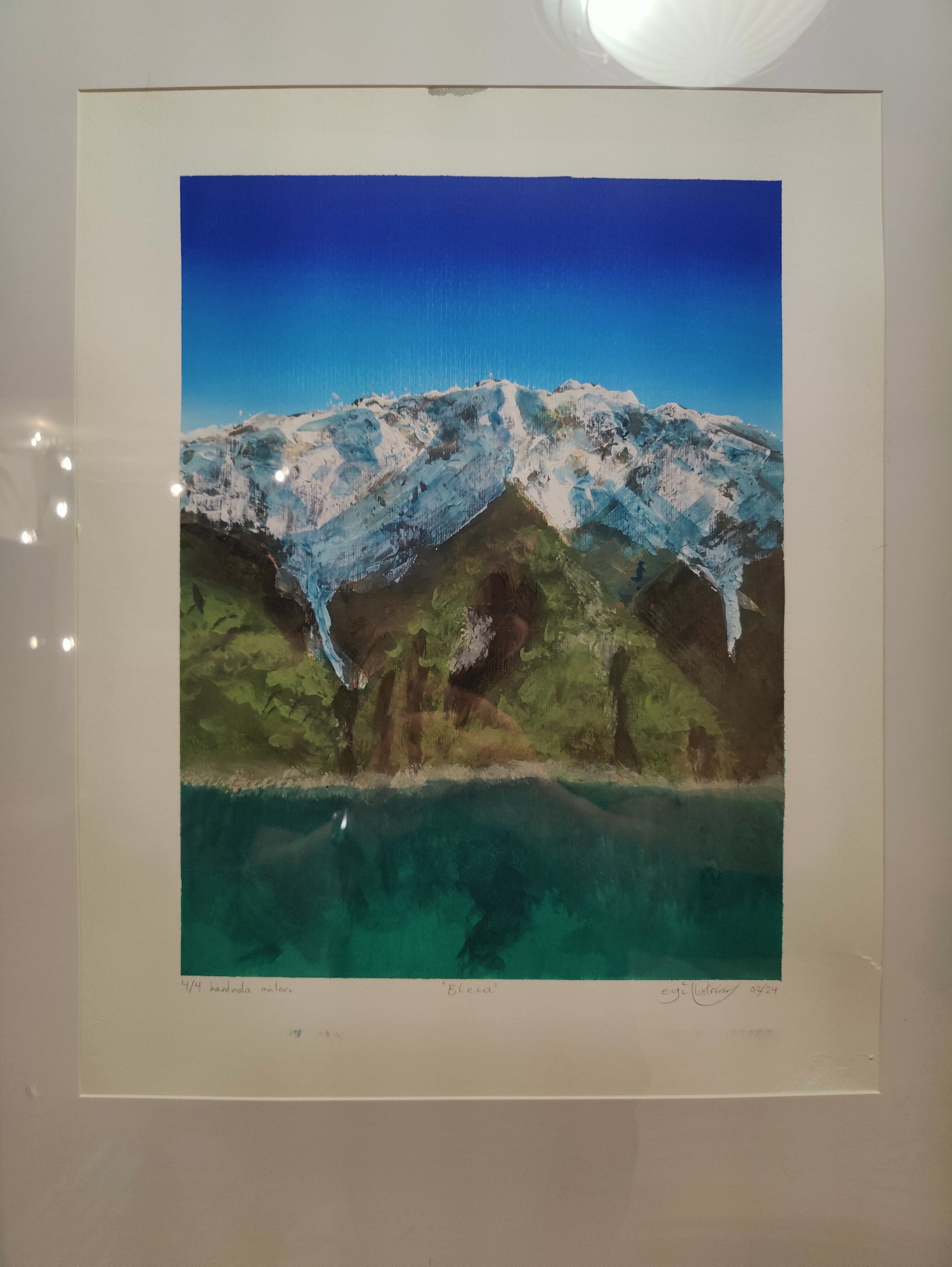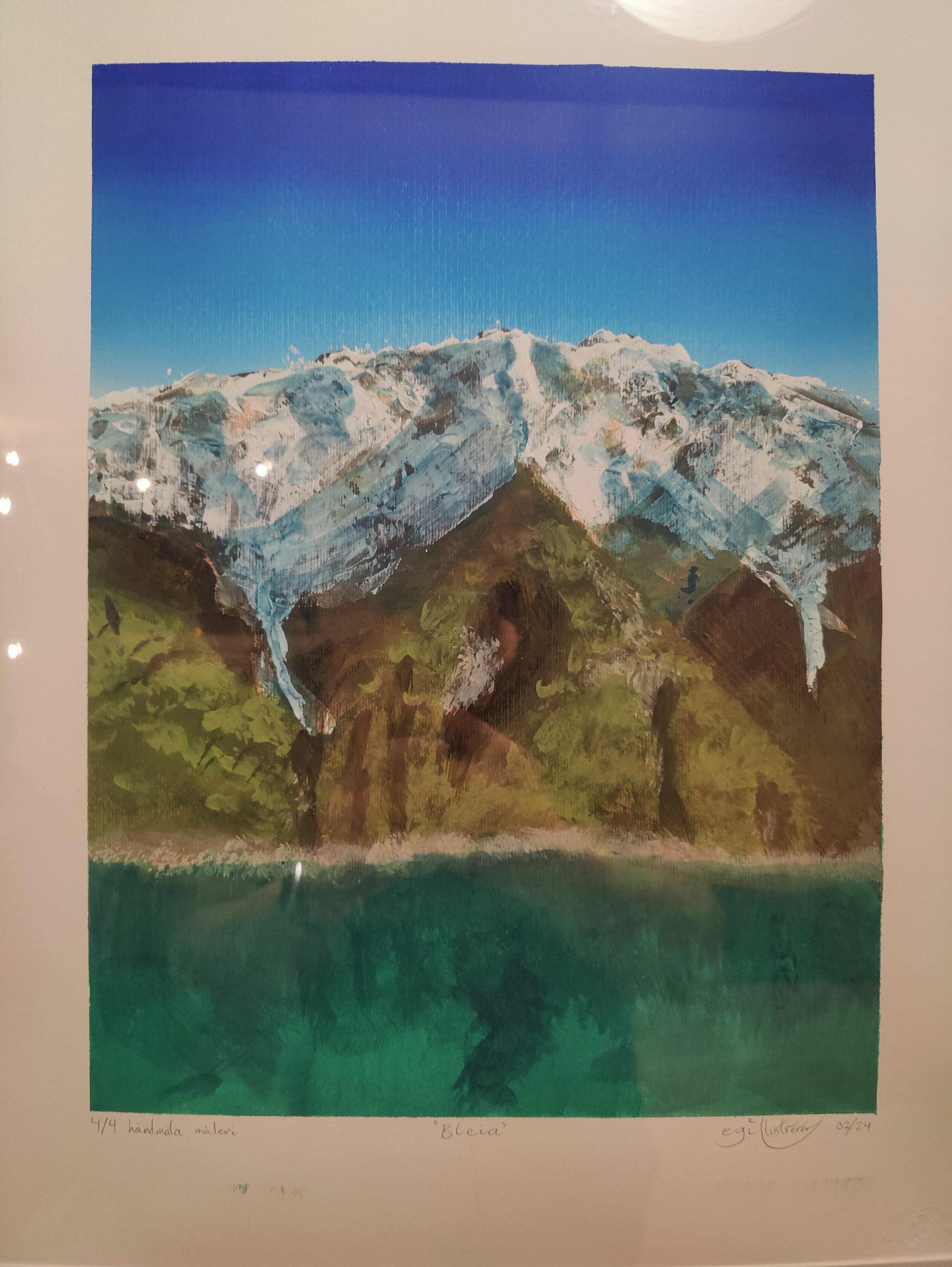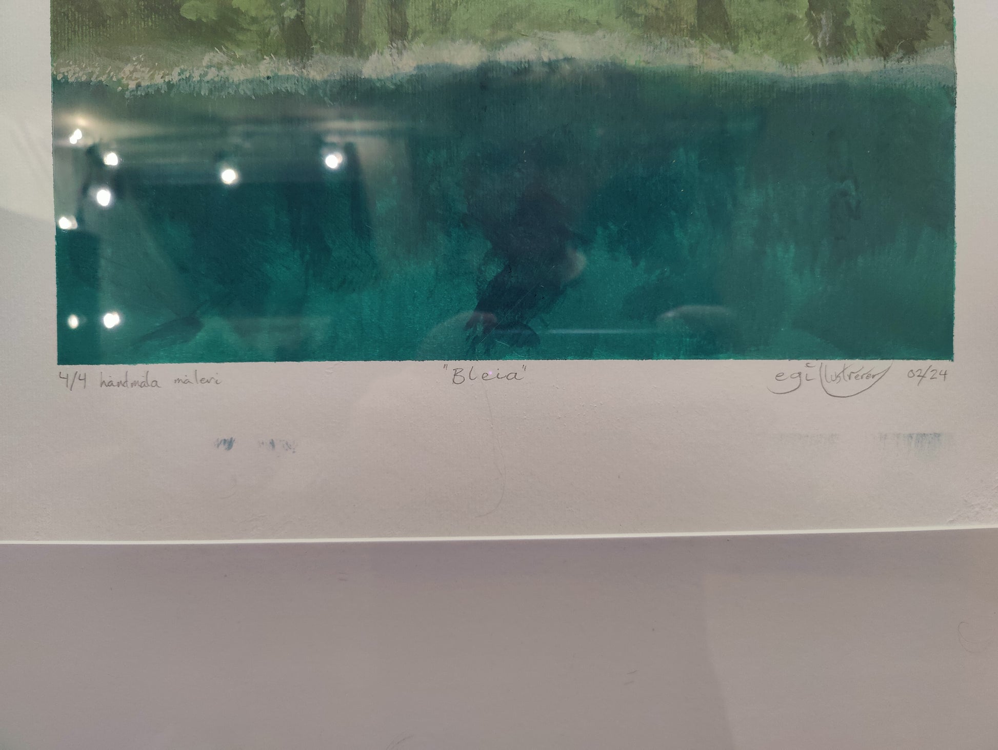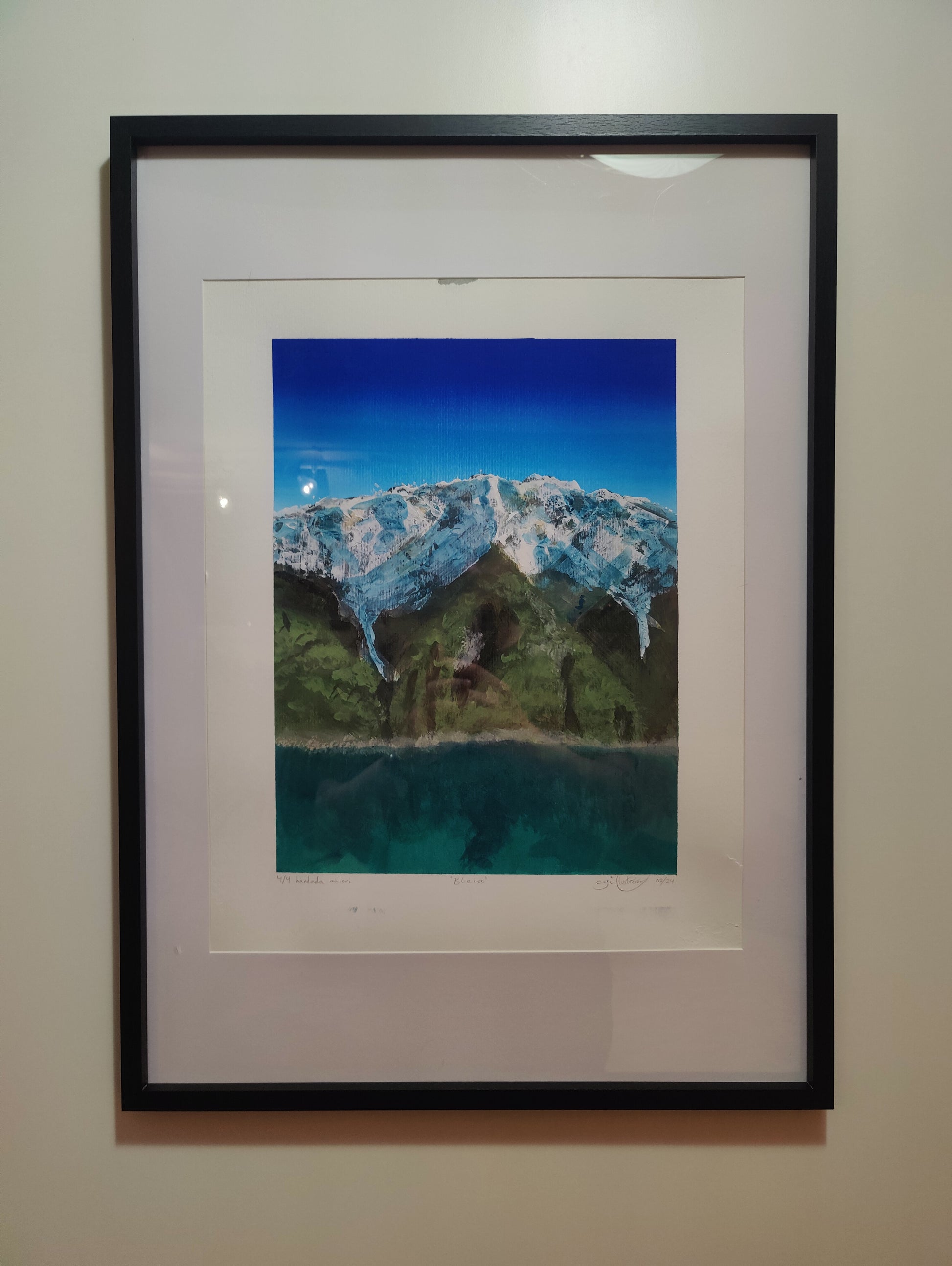 Motivet er det flotte fjellet Bleia som ligg i Lærdal kommune, men som best nytast i utsikten frå Kaupanger. Måleriet er måla i akryl på 300 gsm cotton papir, sjølve motivet er 30x40 cm, passepartout er 40x50 cm og er ramma inn i 50x70 cm ramme.