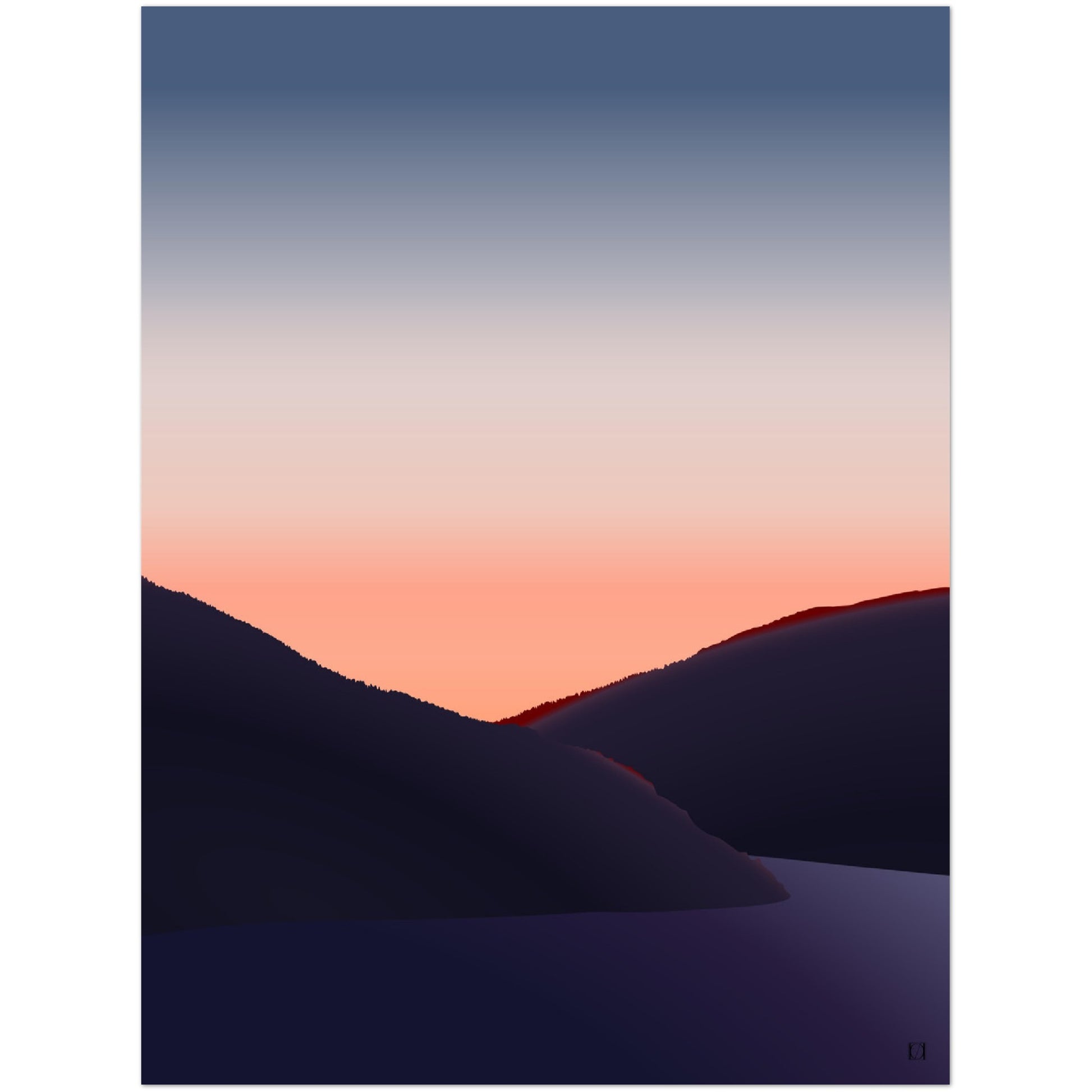 Denne plakaten er basert på eitt bilete eg tok i haust. No i mørketida har eg eit behov for å ha det lyst rundt meg, men dette biletet minner meg om at det igjen kjem dagar der sola går over fjella her i Sogn.
